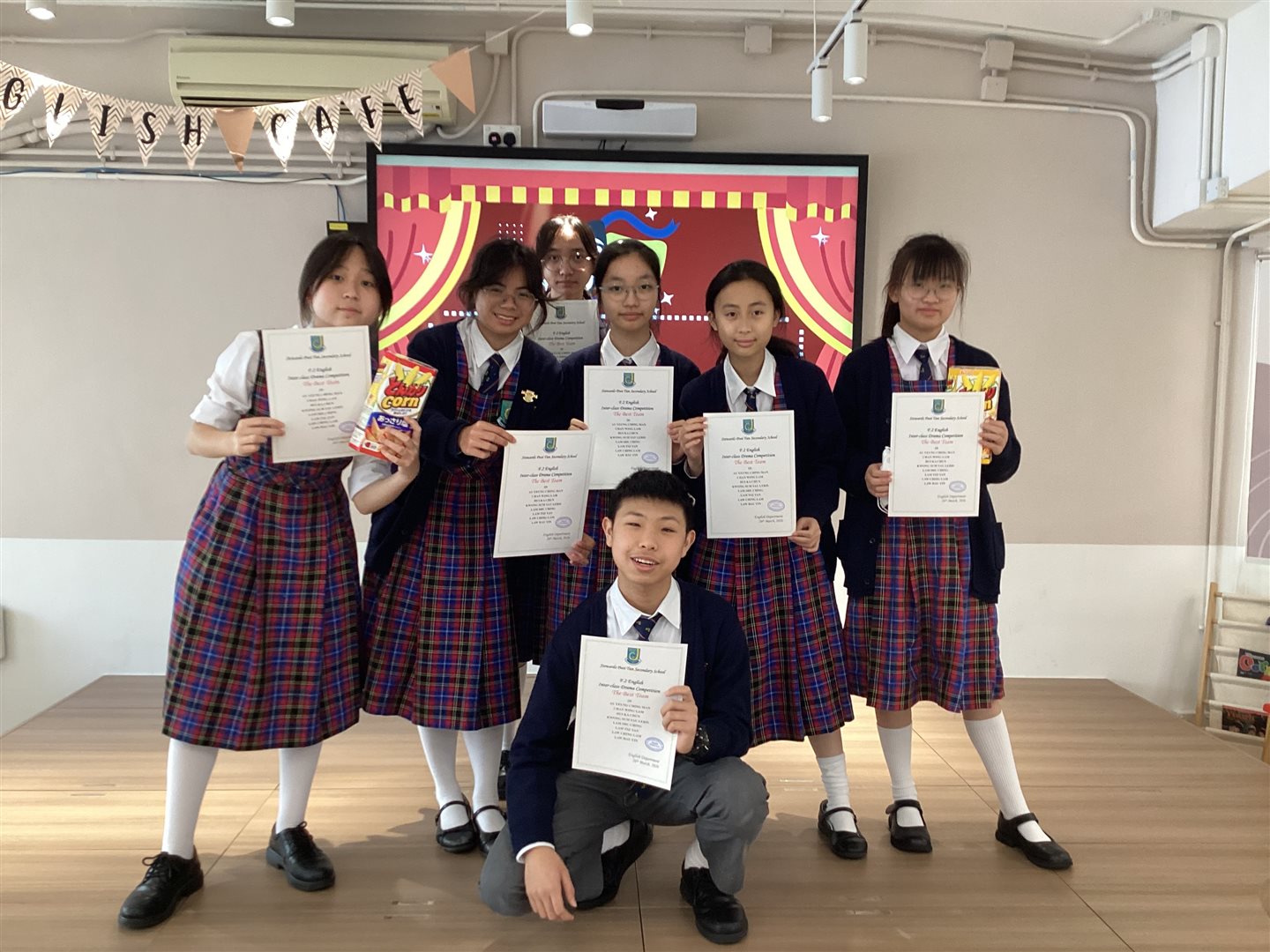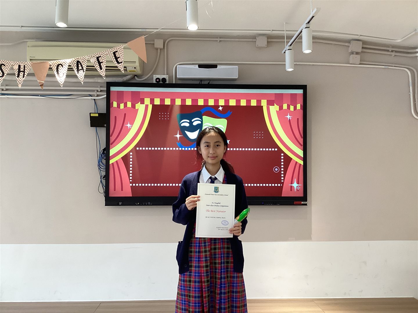 Best Actress: 2D Law Hau Yin Best Actor: 2C Lai Cheuk Kit 2 Best Narrators: 2D Au Yeung Ching Man, 2B Ip Sin Ching