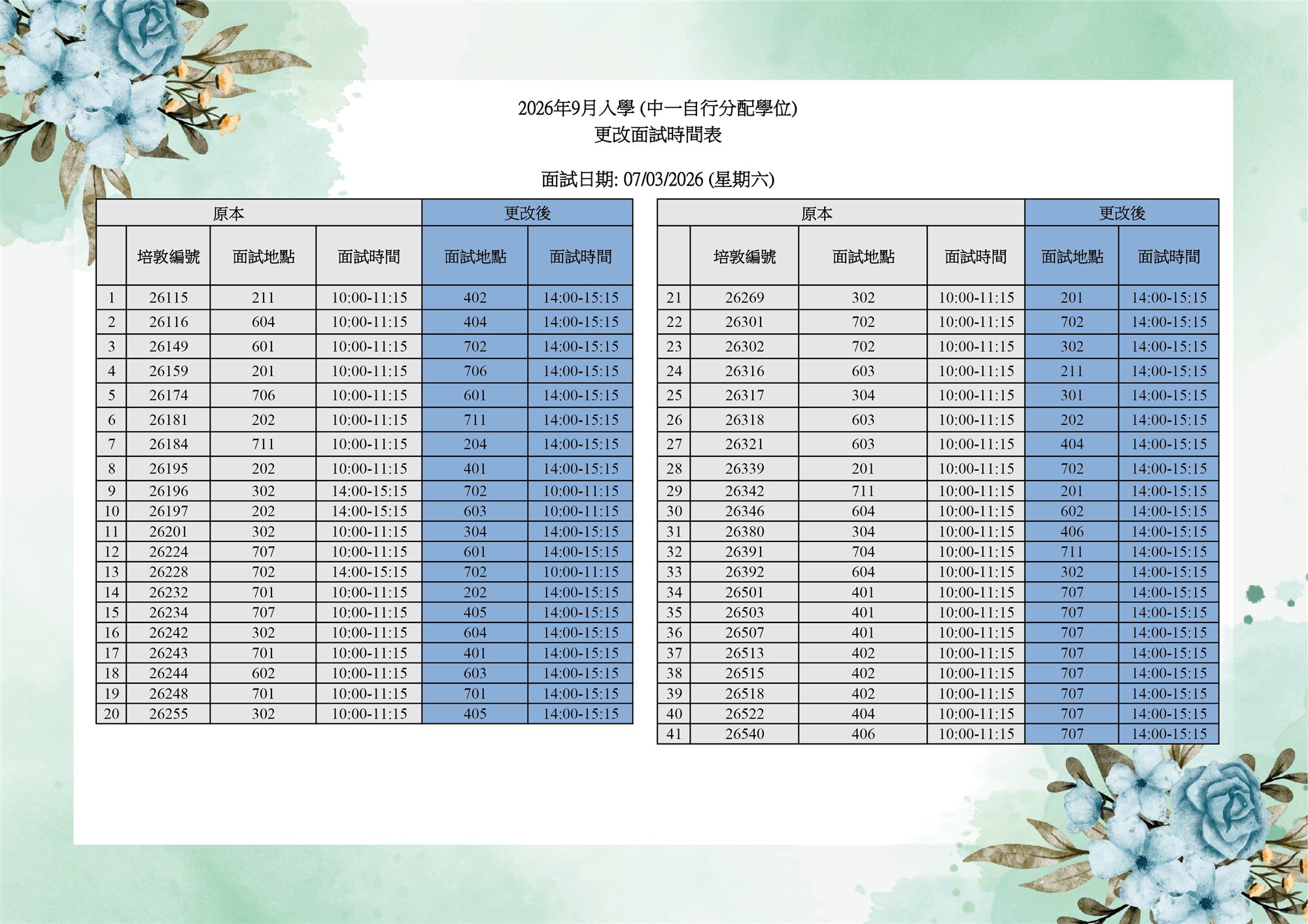 2025-11-03中一自行分配學位申請本校接受中一自行分配學位申請。本校參加中學學位分配辦法的統一派位(適用於2026年9月升讀中一)。