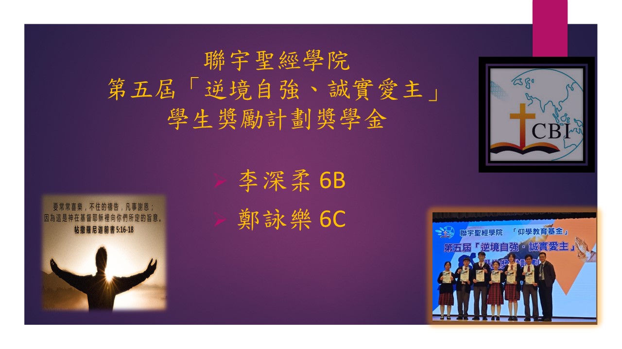 第五屆「逆境自強、誠實愛主」學生獎勵計劃獎學金