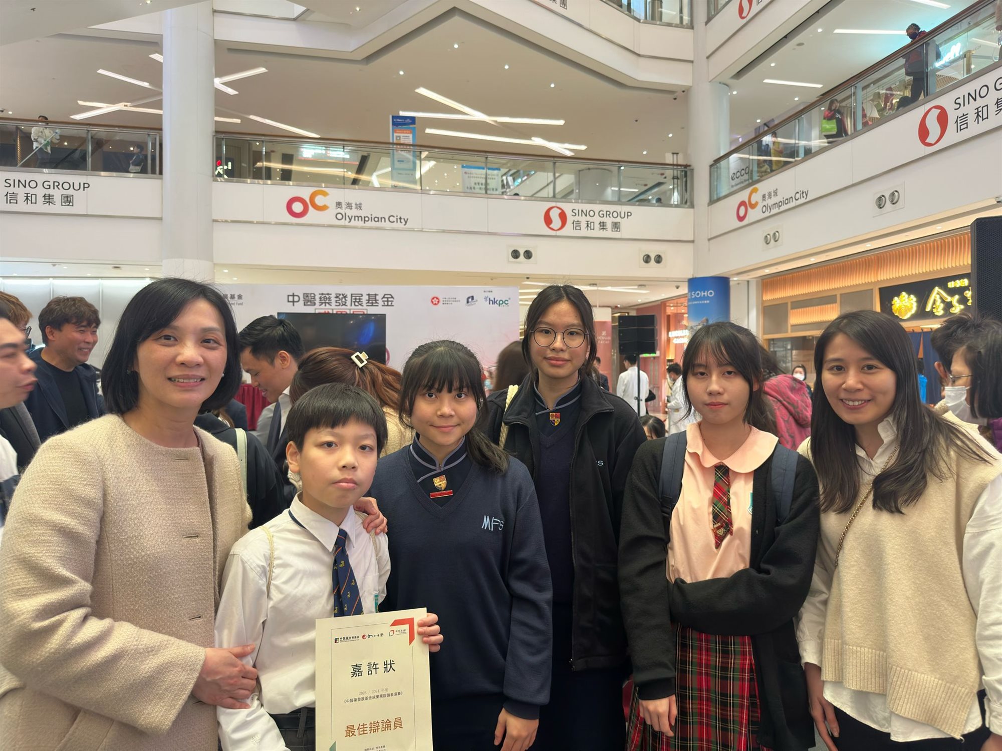 我校辯論隊獲邀參與由中醫藥發展基金主辦的中醫藥發展基金成果展辯論表演賽,2D班陳鎧峰同學及4D班文子晴同學首次在大型商場——奧海城公開表演,並獲取佳績,以1-3得勝,而2D班陳鎧峰同學奪得最佳辯論員。