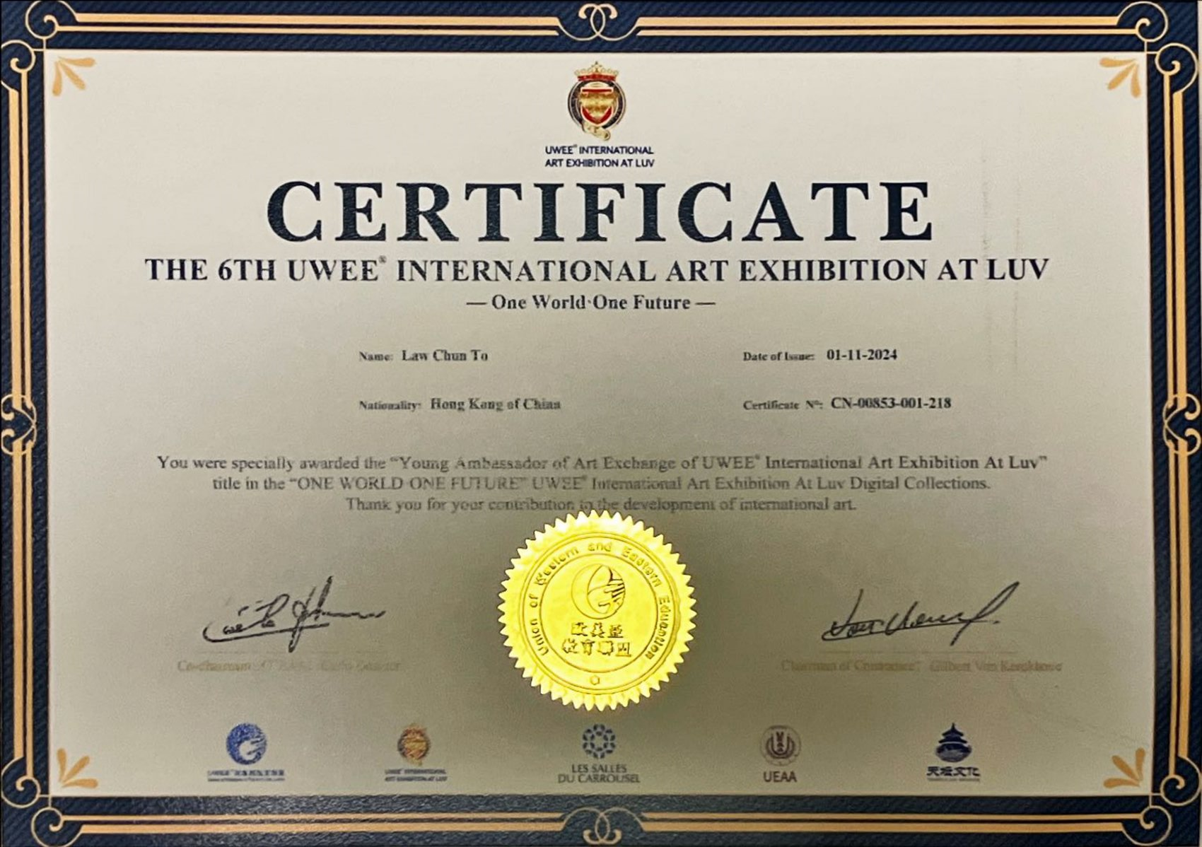 6A班羅進滔同學於本學年參加了法國羅浮宮參賽展,創作主題為“One World.One Future(同一個世界.同一個未來)。此參賽展是法國羅浮宮舉辦的一年一度的國際性藝術展會,其中展覽設置了世界青少年藝術家區域,以展示世界各地熱愛藝術的青少年作品。羅進滔同學的作品獲得銅獎,並代表香港在「法國羅浮宮展覽廳」展出作品。