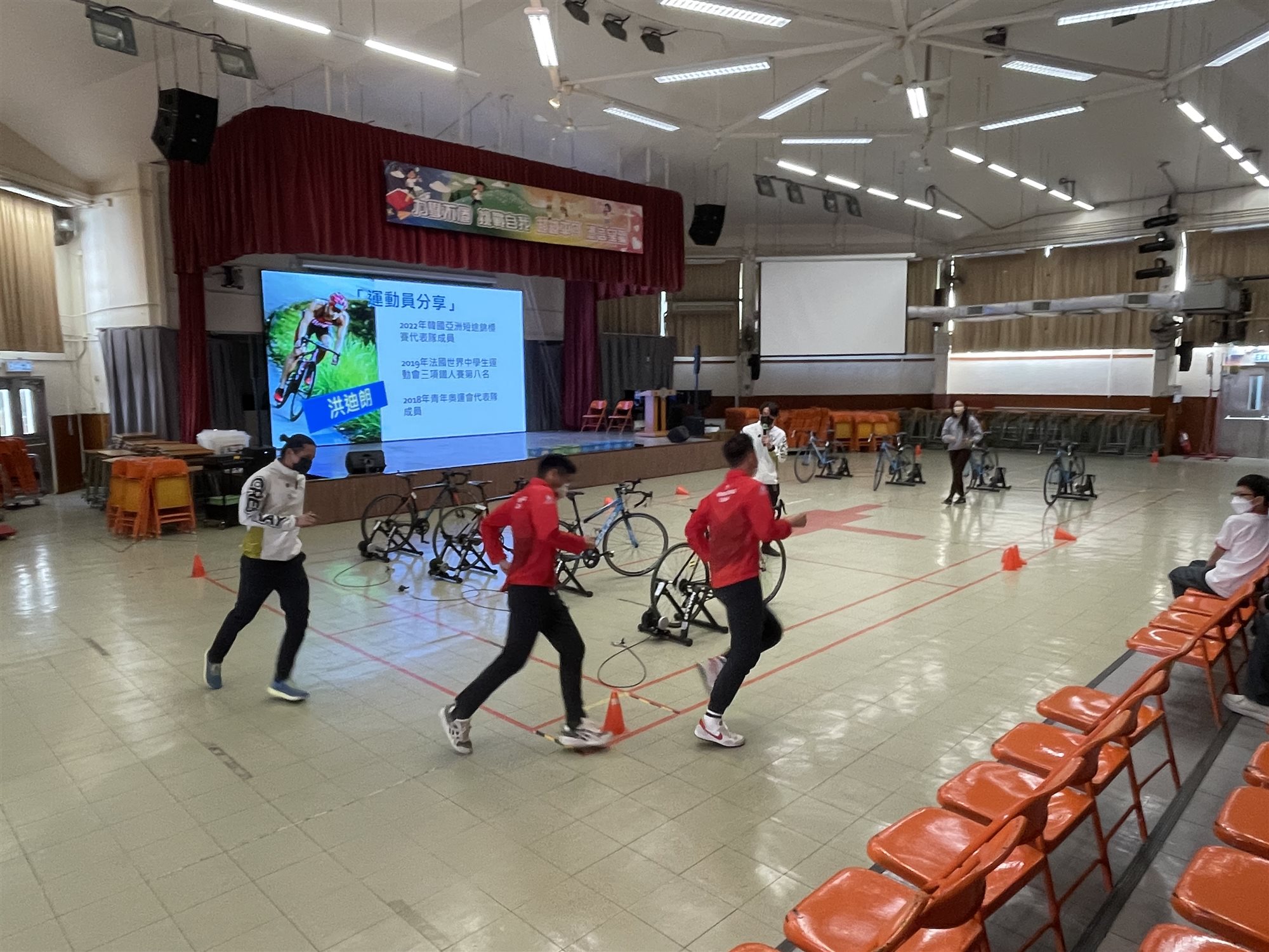 爲了讓同學們領略專業運動員的生涯,體育科同事特意邀請了香港三項鐵人代表隊的隊員到校分享,並即場示範平日集訓的情況。
