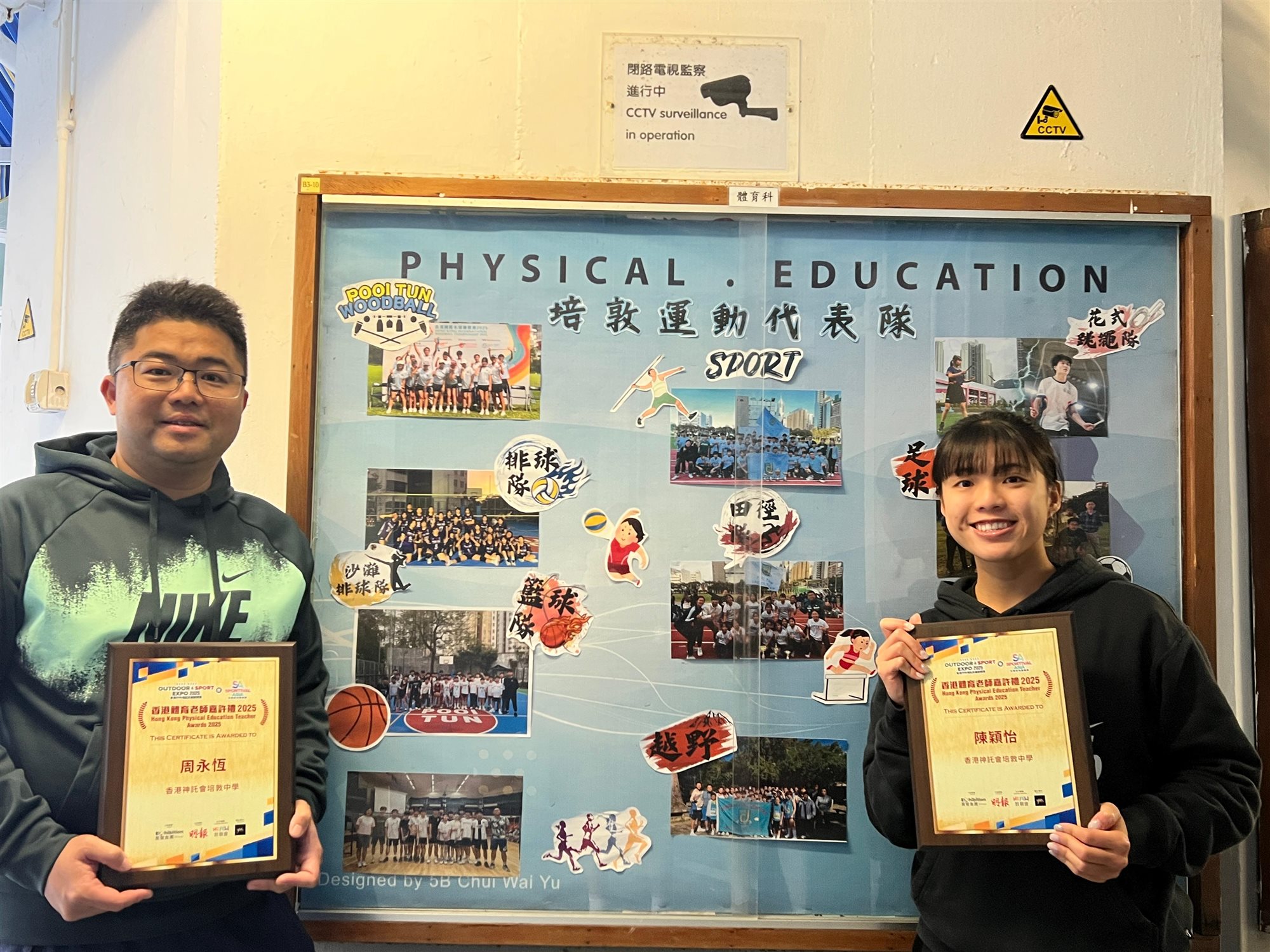 本校體育科周永恒老師及陳穎怡老師榮獲「香港體育老師嘉許狀」殊榮,以表彰兩位老師在推動學校體育課程發展、校隊規劃及學生運動才能培育等方面所作出的卓越貢獻,以及對提升全校運動氛圍的積極投入與無私奉獻。
